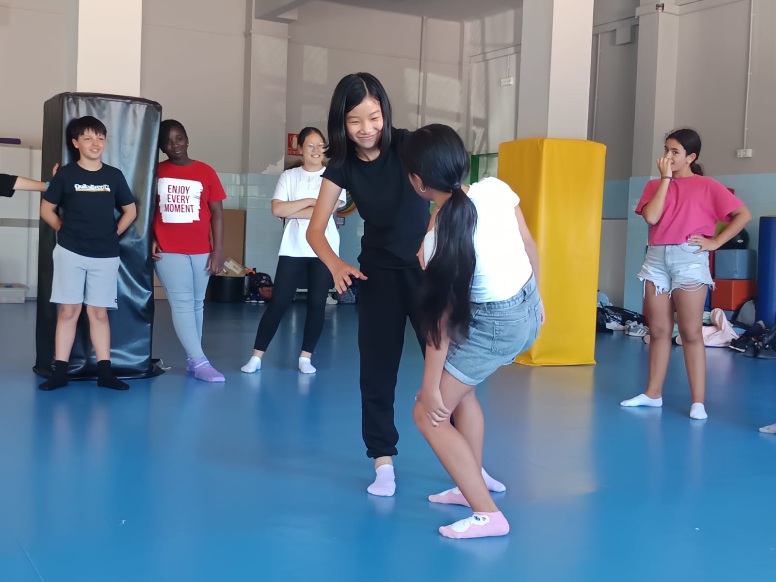A cinquè els infants fan tot tipus de dinàmiques de grup, que els ajuda a guanyar confiança en sí mateixos/es i a aprendre a treballar en equip, una habilitat imprescindible per al teatre. A més, treballen diferents elements com la respiració, la projecció de la veu o la coordinació amb els companys/es, com a pas previ del treball que faran el curs següent. Així, a sisè les sessions es dediquen a preparar una obra teatral, en la qual cadascú interpreta el seu paper. A final de curs l’obra és representada en un teatre de la ciutat, juntament amb les altres escoles que participen al projecte.
