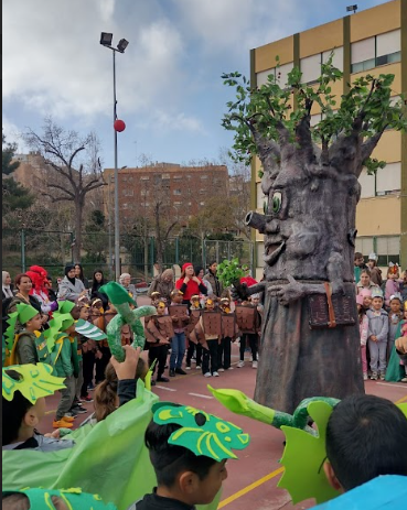 Tots els nens i nenes de l’escola van preparar unes disfresses xulíssimes relacionades amb el centre d’Interès d’aquest any: Les Santes. Els més petitons/es de la casa van anar de la família Robafaves, els de 1r d’Àligues, els de 2n de Dracs, els de 3r de Diablesses, els de 4t de Dragalions, els de 5è de Nans i els de 6è de Momerotetes! Vam fer una rua al voltant de l’escola i vam acabar ballant amb el Cirerer, que no es va voler perdre la festa.