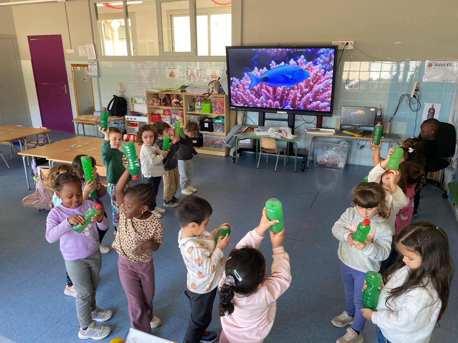En paral·lel a aquestes activitats, els nens i nenes d’Infantil han treballar el Projecte SI, en el qual comprenen la importància dels hàbits saludables a través del joc i l’experimentació. En aquesta ocasió han visitat la classe d’I5 de l’escola El Turó! I han passat un matí de jocs tots plegats, acompanyats d’en Cardio.