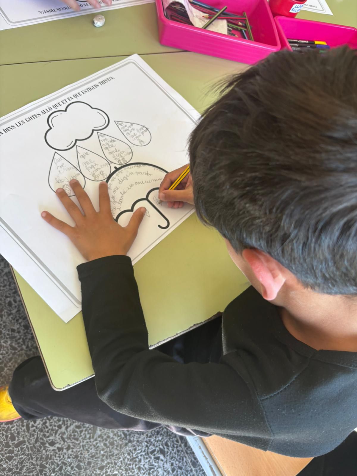D’una banda, aquest any hem volgut focalitzar-nos en el treball de les emocions. Cada classe ha treballat una emoció específica a partir de la lectura d’un conte i de la realització de dinàmiques i activitats diverses. Hem treballat la calma, la vergonya, la por, la ràbia, l’assertivitat… A la classe d’I3 han practicat ioga i han creat la seva pròpia ampolla de la calma, a segon han pogut viure amb el seu propi cos el pes de les pors que de vegades ens envolten, a sisè han après a crear un escut per saber dir «no» d’una forma assertiva… Hem pogut explorar i aprendre moltíssim!