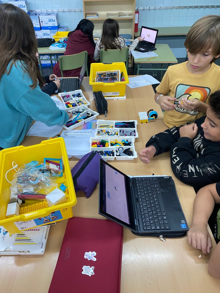 A Cicle Superior hem seguit la mateixa estructura: primer hem reflexionat sobre el concepte de programació i hem treballat les instruccions bàsiques amb l’aplicació Scratch. Després, en grups, s’han treballat diferents reptes amb el Lego Spike, un material molt versàtil que ens permet muntar dispositius amb peces de Lego i programar-los després.