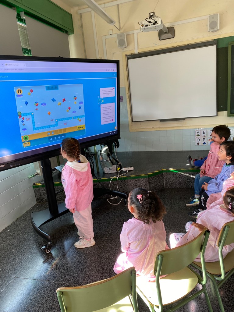 A Cicle Inicial també hem treballat en desconnectat conceptes bàsics de direccionalitat i hem introduït les instruccions bàsiques per programar un robot. Hem començat a programar el Tale-Bot, a partir de diferents reptes que es resolen en equip.