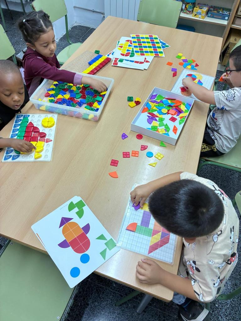 - Disposaran individualment d’un maletí amb un petit quadern de treball i molt material manipulatiu, que els permetrà fer una aproximació a les matemàtiques totalment experimental i vivencial. A més, també faran sessions de racons.