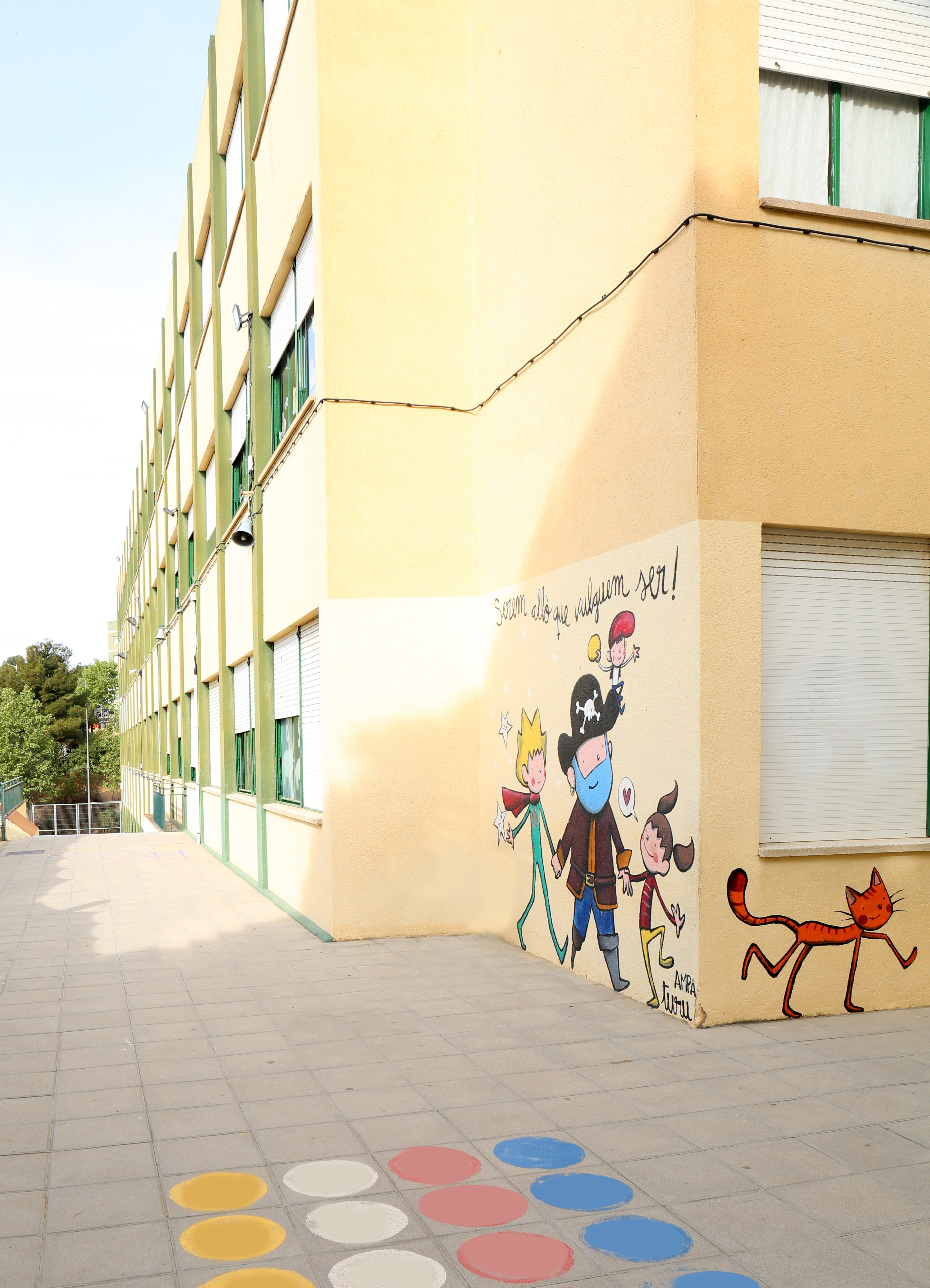 El centre està format per 2 edificis: l’edifici principal, on trobem totes les aules i espais complementaris, i el menjador, construït més recentment.